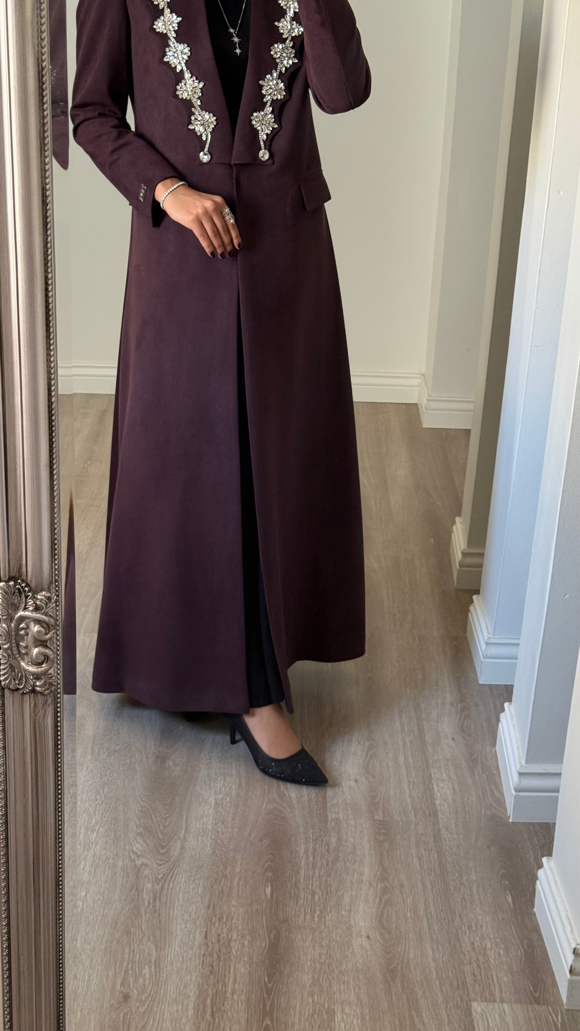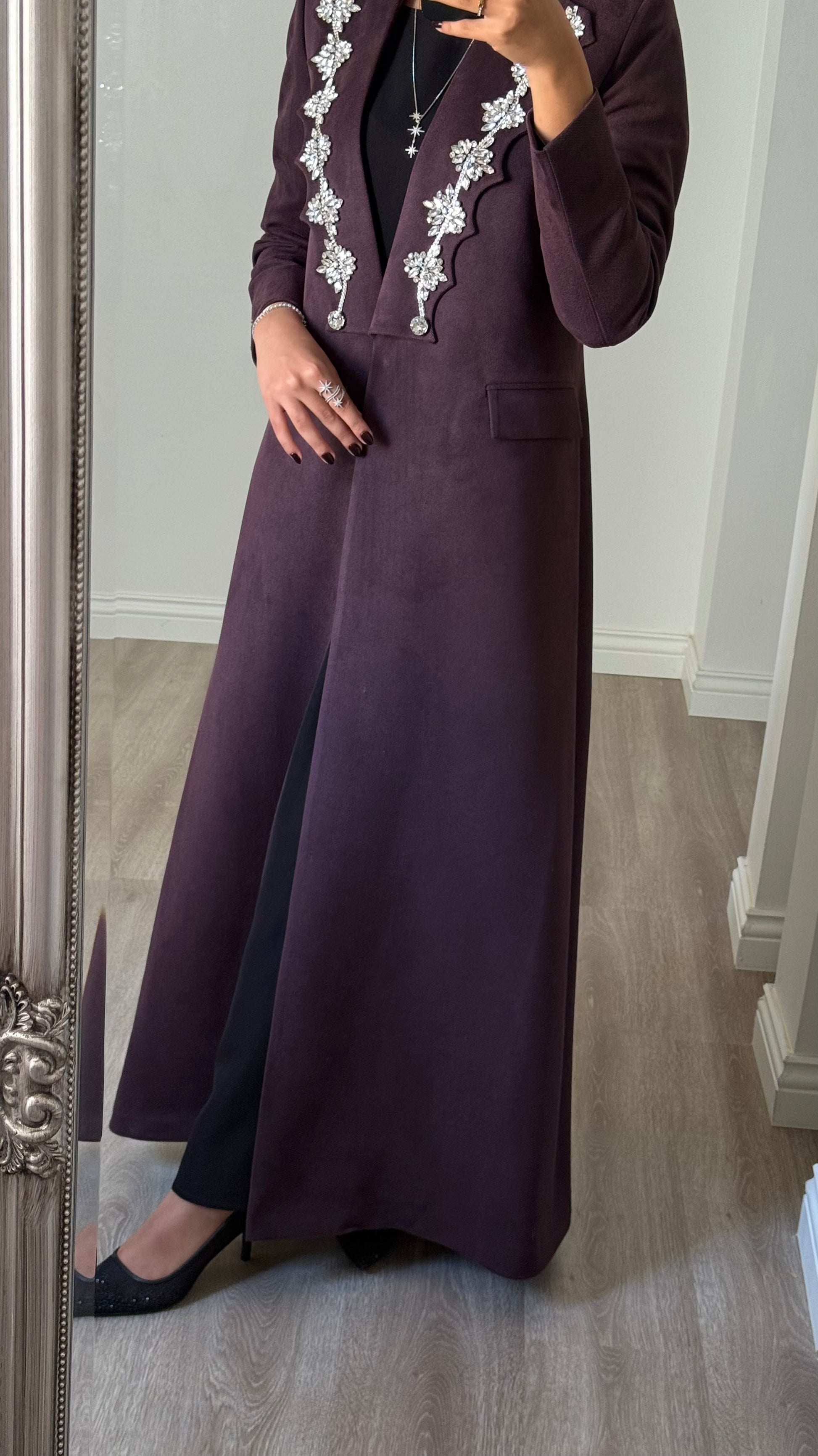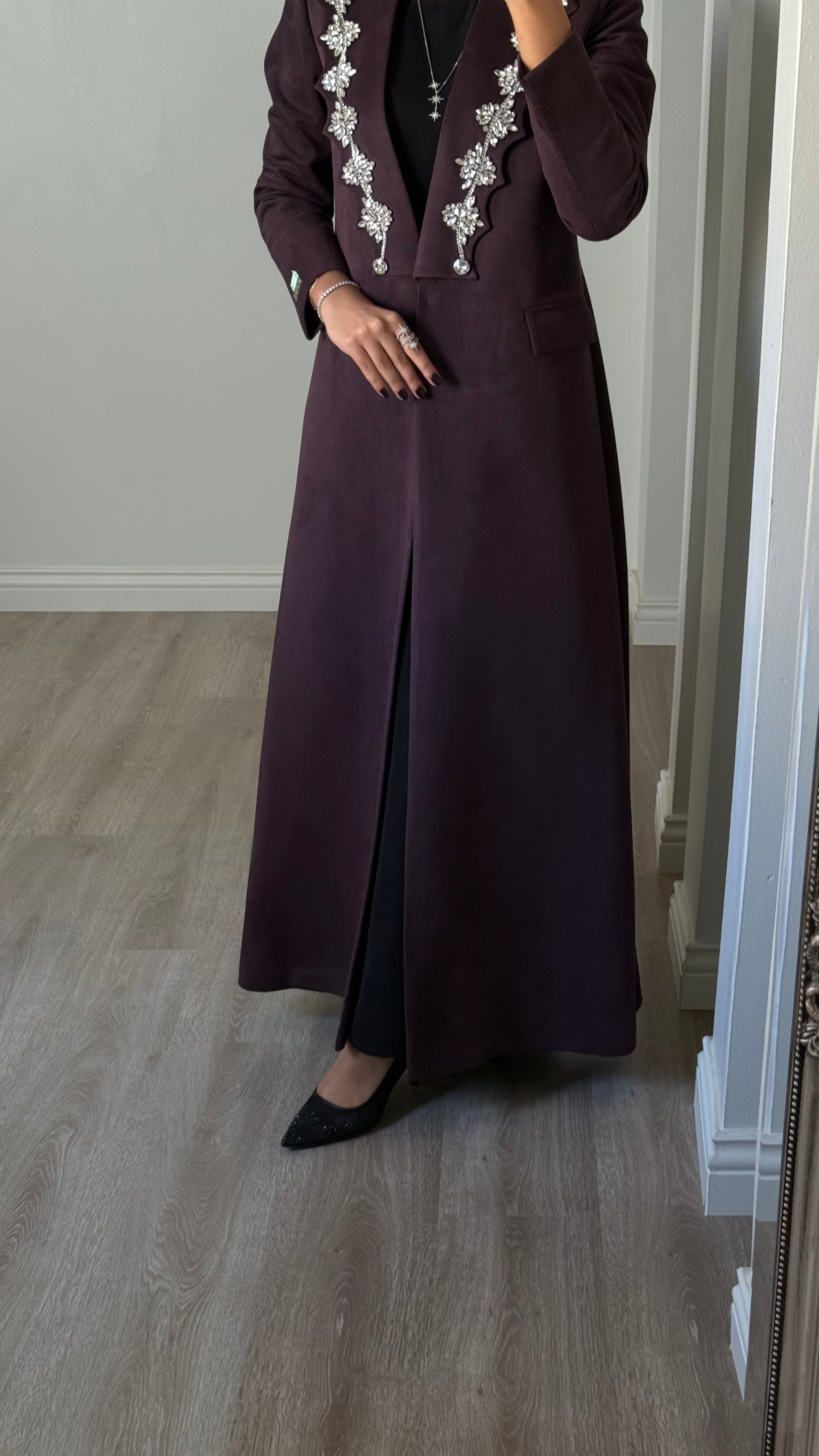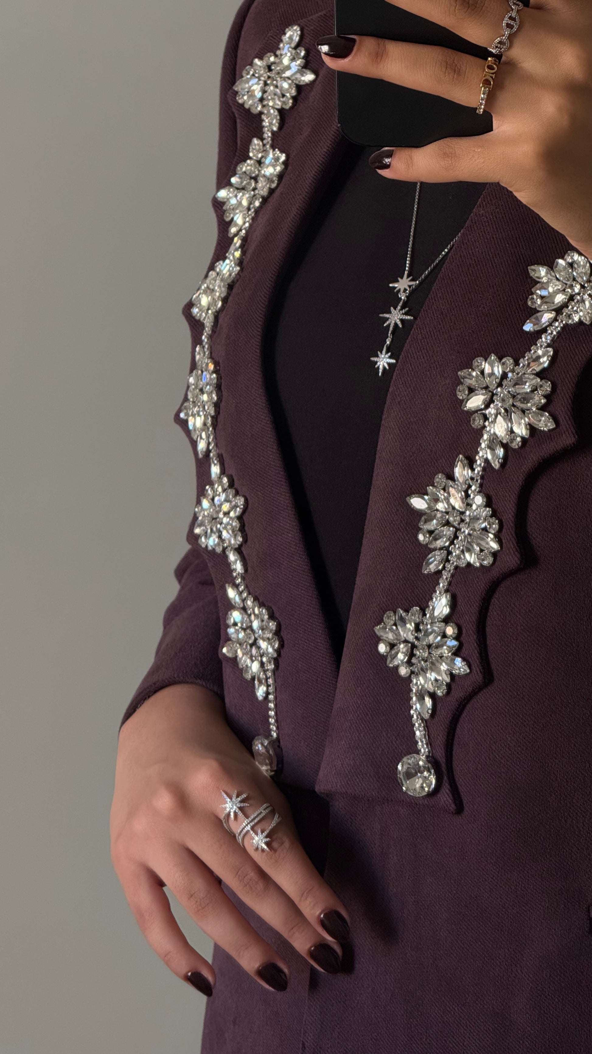 تصميم بلون التوتي الداكن مع كرستالات يمتد على الجهتين